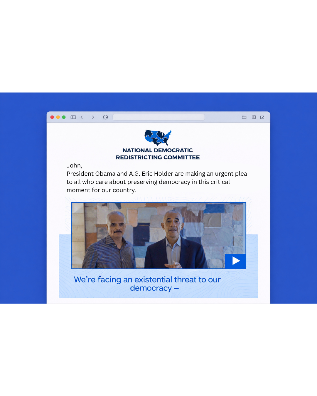 The Obama and Holder videos were reproduced across paid media and promoted over email, generating new supporters for NDRC and raising critical funds for their fight.